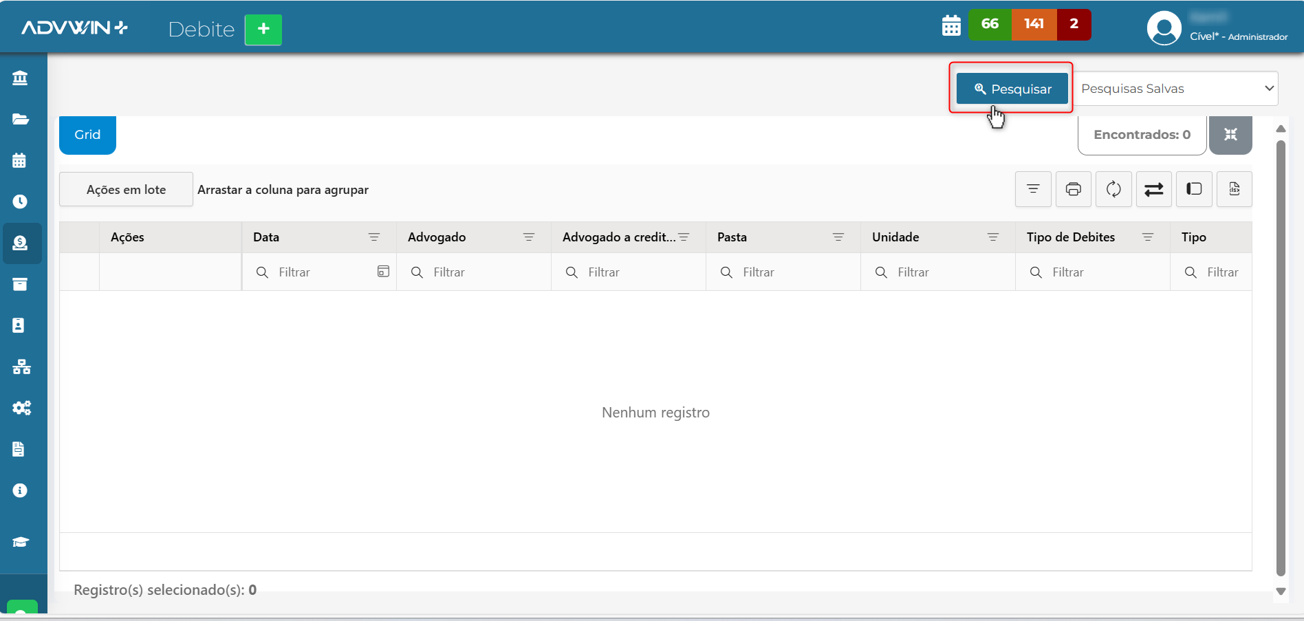 2. Pesquisar: a pesquisa será realizada e as informações aparecerão no GRID.